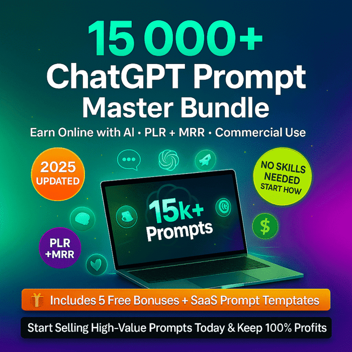 15,000+ ChatGPT Expert and Advanced Prompts with Resell Rights | Earn Online with AI | Commercial Use PLR Mega Bundle | Passive Income