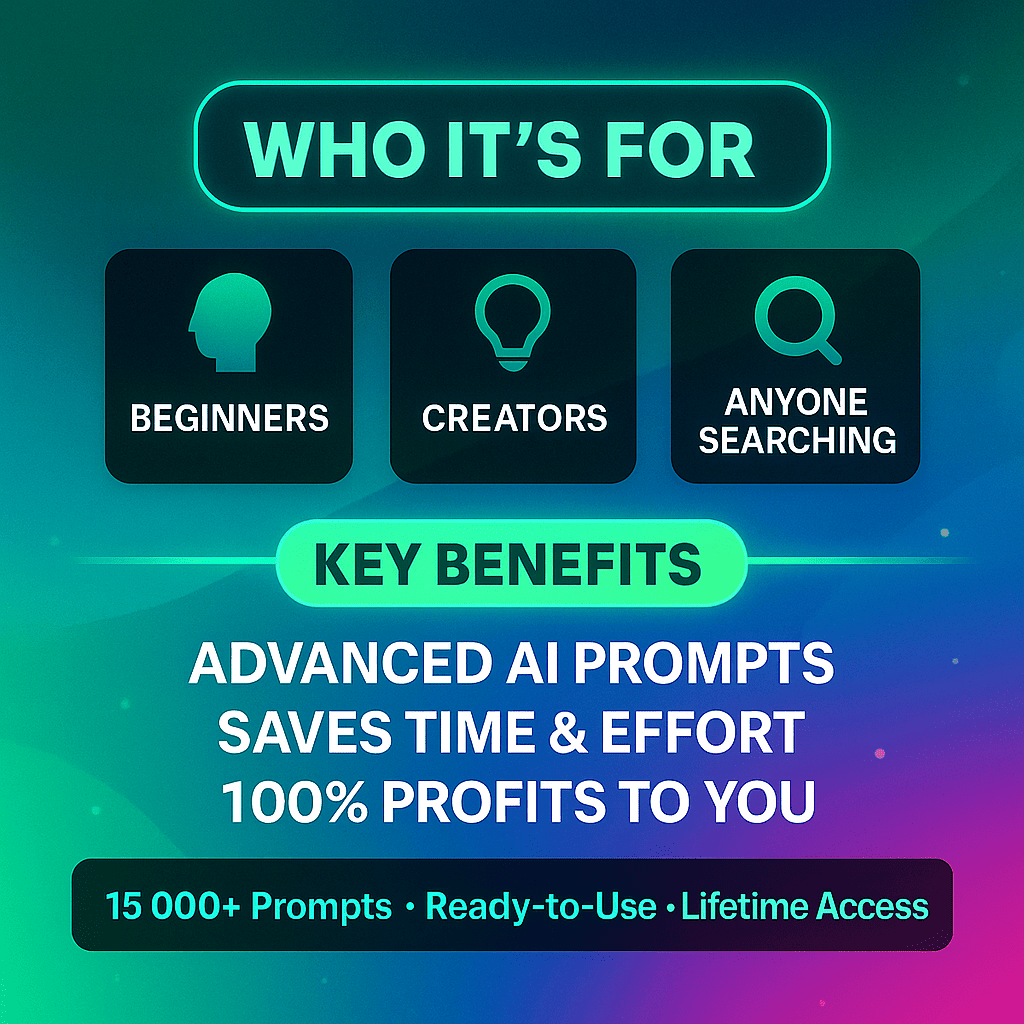 Want to profit from AI without coding or building an app? Unlock the 15,000+ ChatGPT Expert Prompt Bundle β€” a game-changing mega library of AI instructions crafted for real-world use cases across business, content, productivity, marketing, and more.
